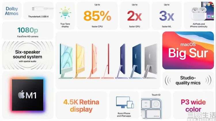 比如说很多朋友可能会认为刚刚亮相的新款iMac轻薄、多彩,而且强大,堪称重新定义了一体机的颜值巅峰。然而,这也得益于苹果自研的M1 SoC芯片。