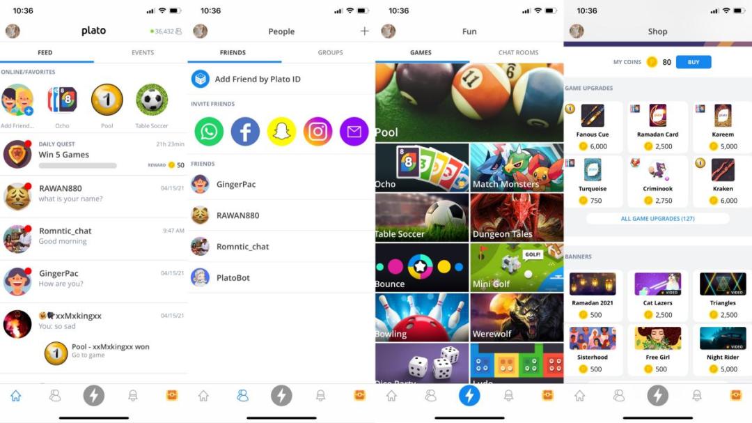 另外,和其他应用的最大不同是,Plato 无需注册即可使用几乎所有功能,可以玩游戏、聊天都没有问题,用 Plato 自己的表述就是“我们还是认为数据归您自己所有,因此我们不需要您的联系方式,另外您的数据也不会存储在我们的服务器上”,也就是说,用户在 Plato 上是绝对自由的状态。