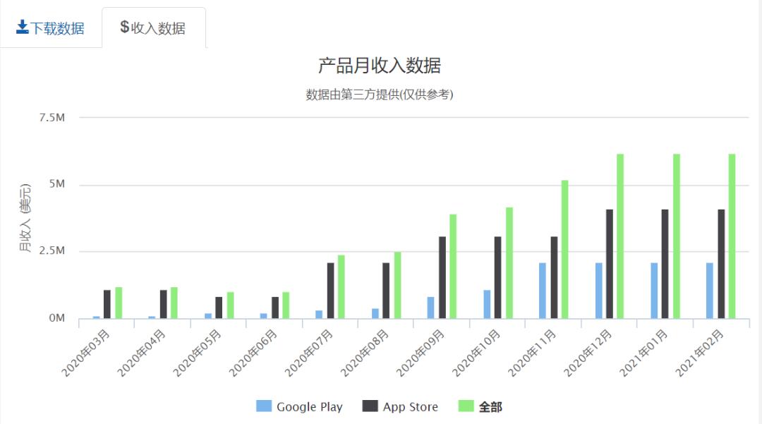可自2020 年 3 月以来,接连出现原有 App 量级陡然上涨、新 App 不断涌出的情况。大家都熟知的是,Houseparty 在海外社交榜单霸榜将近一个月、Yalla Ludo 的 MAU 由 2019 年 Q4 的 86.5 万增至 2020 年 Q4 的 1001.2 万,同比增长 1000%。收入也随用户盘子扩大,快速拉升,2020 年 3 月有 700 万美金左右。