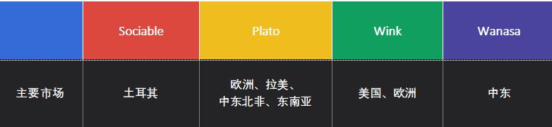 看完这四款 App 的直观感受是,2020 年大家又开始重新重视中东市场了以及欧洲、北美等成熟市场的用户使用游戏社交 App 的习惯在疫情中延续了下来。如果具体到应用来看,也可以看出几款应用的核心功能相似,但又各有特点。(因为 Sociable 目前仅在土耳其本土运营,所以我们今天暂且不作分析)