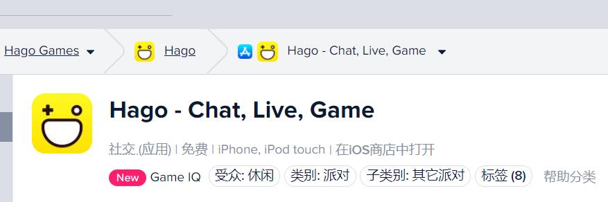 在正式探讨游戏社交之前,我们先来明确一下其在本篇文章中的定义。在现今时代,游戏和社交的交融性不断加深,在一定程度上,我们很难完全界定一款产品的所属类别,比如欢聚旗下应用 Hago,上架在了应用商店的社交类别,但 App Annie 同时将只适用于游戏的“休闲、Party”等标签标注在 App 上。因此,下文所下的定义不一定适用所有情况,请读者朋友们按需参考。