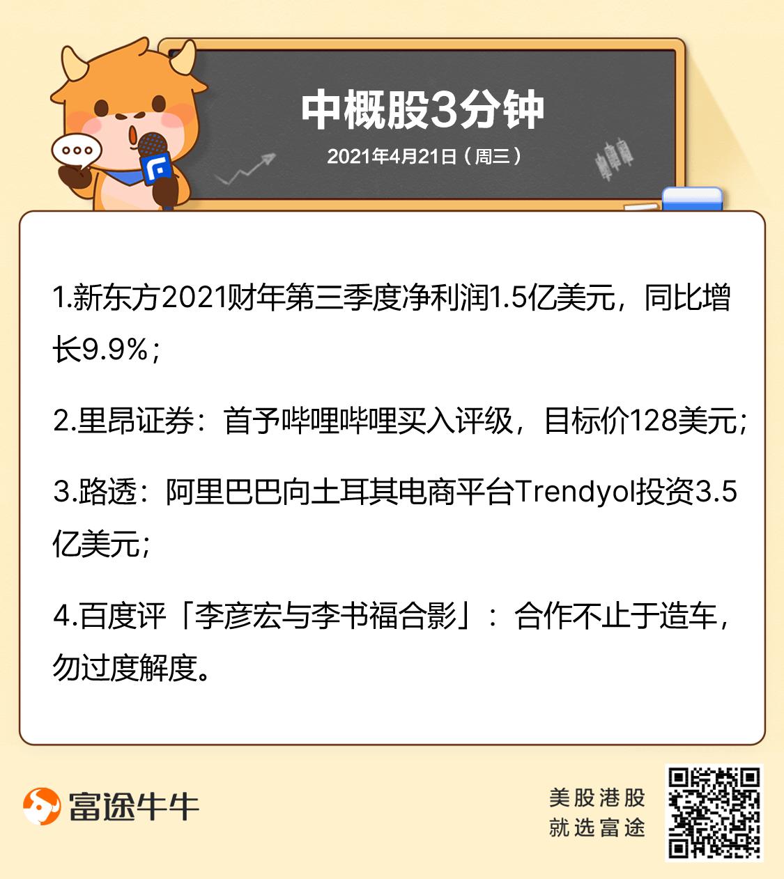 新东方2021财年第三季度净利润1.5亿美元,同比增长9.9%