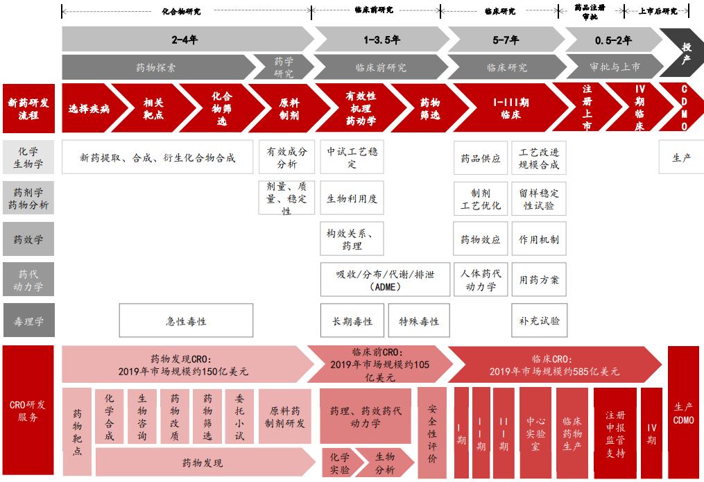 中国因为CRO行业历史不长,目前各细分领域都有对标的龙头公司,这里按药品开发前后过程,讲几家CXO企业。