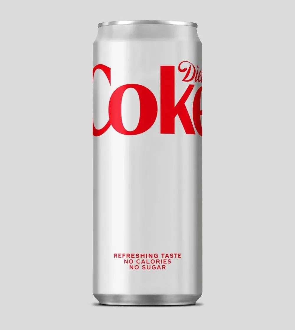 「健怡可乐」则用红色LOGO搭配银色背景,呼应“健怡”系列特色的包装设计,整体更加的简洁高级。