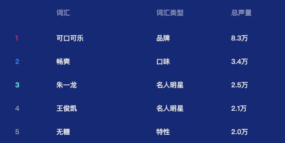 除此之外,就中国市场而言,根据时趣洞察引擎数据,也可以看出,在可口可乐社交媒体营销趋势热词Top 5榜单上,用户对于其品牌、口味和特性本身的关注度都是突出显著的,这也说明可口可乐本身已经成为了一种社交符号,而对于产品包装的换新,无异于也是强化这种符号本身。