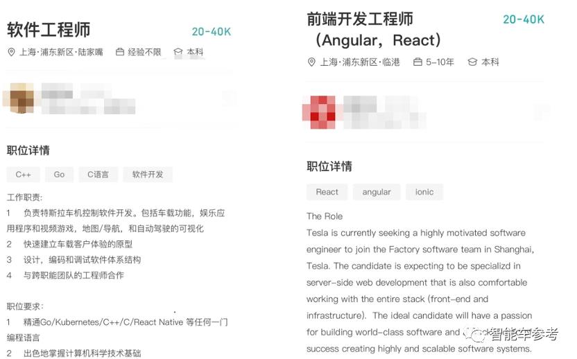 但目前从招聘信息来看,特斯拉关于智能互联和自动驾驶等核心技术岗位的招聘依然集中在国外,在国内主要的人才需求是软件工程师和前端工程师等,月薪范围为20-40k。