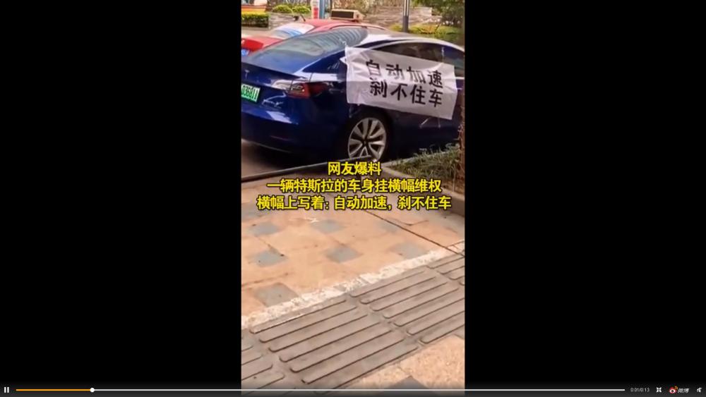 广西南宁有网友发布一辆特斯拉身挂“自动驾驶,刹不住车”的横幅视频,称该车已停放半月;山东青岛网友发帖称自己拍下了刹车失灵的视频;广州增城有爆料称一辆特斯拉失控碰撞后起火,目前警方正在核查原因。