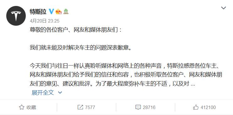 这两天,特斯拉维权事件闹得沸沸扬扬,一开始特斯拉中国副总裁对此事拒不妥协及傲慢式回应,引起了不少网友的不满。随着舆论的发酵,特斯拉于4月20日深夜发博道歉,称“尽全力满足车主诉求”。