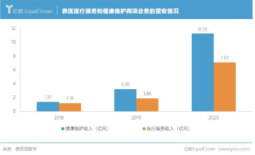 招股书数据显示,2018-2020年,微医平台提供的数字医疗问诊量达4000万次,医疗服务分别贡献营收1.18亿元、1.86亿元、7.07亿元,占总营收比例分别为46.1%、36.8%、38.6%。