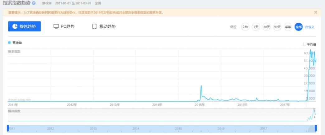 内容方面,不妨站在整个中国娱乐的山巅来俯瞰,那些具备全民认知的明星顶流,几乎都来自长视频的“养成”——2018年1月之前,进入娱乐圈六年的蔡徐坤百度指数只有1000左右,参加爱奇艺的选秀综艺节目后,其最高指数超过15万,之后更是成为各大头部品牌青睐的代言人。