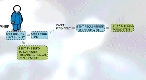查找时,通过手机选择对应物品,系统根据 MAC 地址向贴片发送信息,引发 Tag 的蜂鸣和闪烁,以帮助用户追踪到物品,相关的需求能涵盖到工作与生活中的诸多场景。