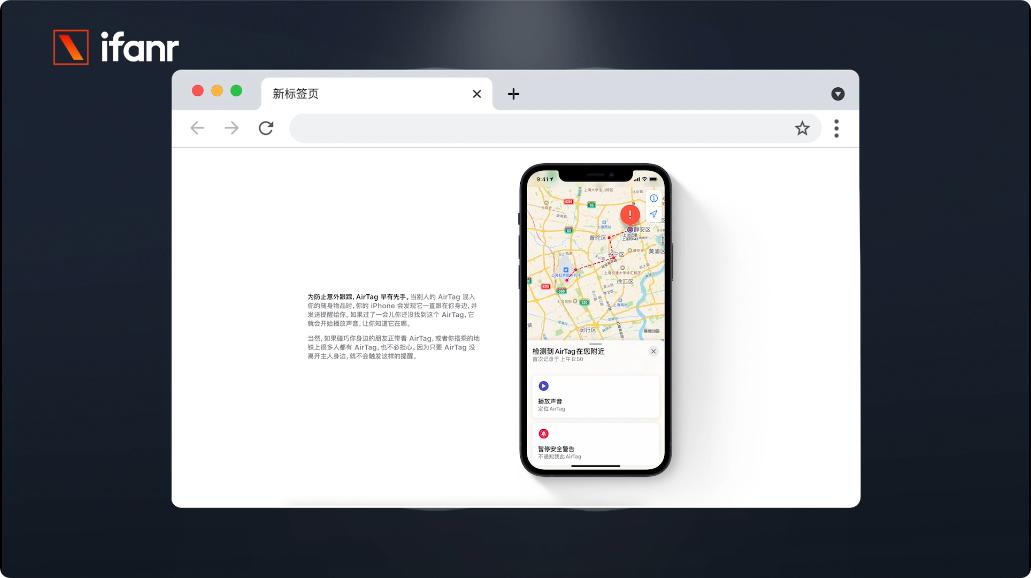 在昨天短暂的跟踪测试中,我跟同事互换了 AirTag 进行追踪。 结果,对,我们发现了彼此的住处。 但是苹果官网表示,AirTag 将会通过手机提示+声音警报的方式规避被追踪的可能 。 也许后续的固件更新会完善隐私保护吧。