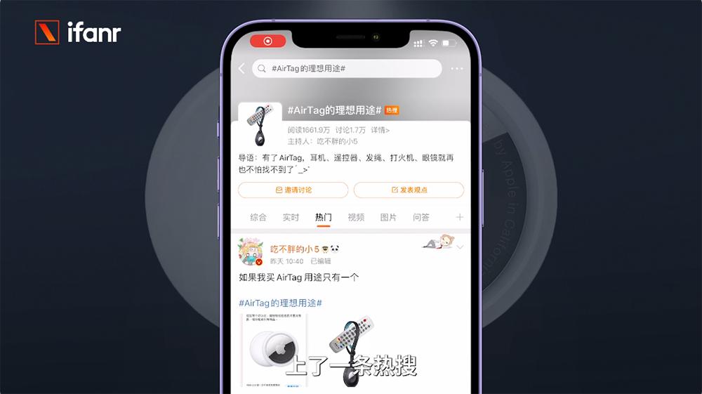 大家好,欢迎收看爱范儿。我是头部 UP 主乔纳森·何。昨天 AirTag 刚刚发布的时候,上了一条热搜:AirTag 的理想用途。为了帮 AirTag 找应用场景,真是辛苦大家了。
