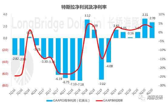 2019年Q3开始特斯拉毛利率持续为正,2020年则是特斯拉全年净利润转正的里程碑式的年份。