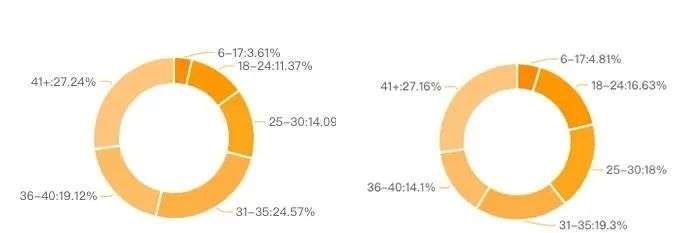 左为“黑蛋哥”粉丝分布,右为“婆婆也是妈”粉丝占比 图源 / 飞瓜快手版