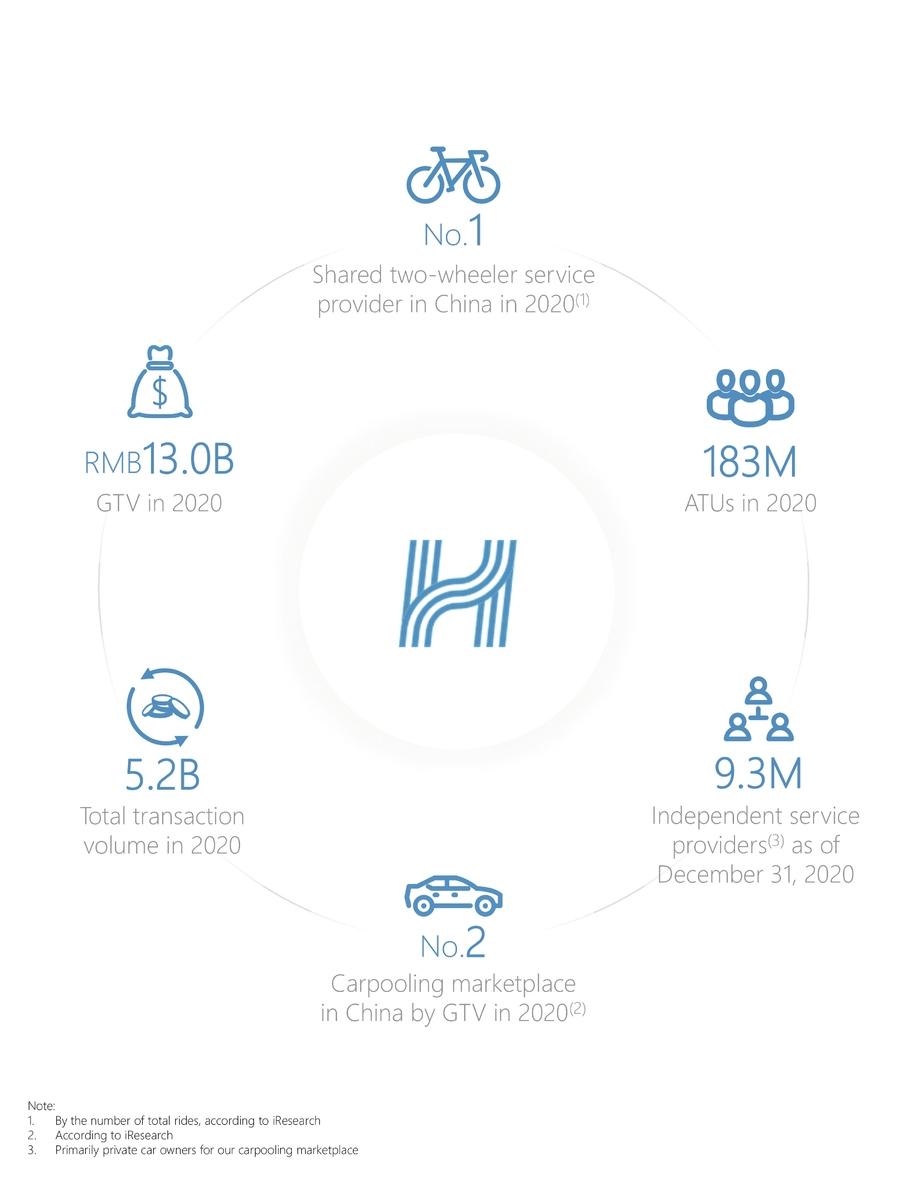 此前,公司于2019年6月推出了与宁德时代和蚂蚁集团合作的小哈换电服务,为两轮电动车用户提供换电解决方案。目前,小哈换电已在55座城市部署,未来将会为包括哈啰电动车用户在内的越来越多的用户提供换电服务。