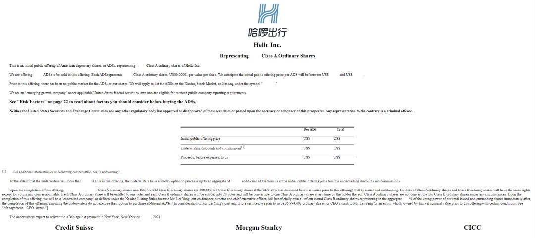 本地出行及生活服务平台哈啰出行首次提交IPO申请,计划在纳斯达克证券交易所挂牌上市,瑞信、摩根士丹利及中金公司为联席保荐人。公司此次募资用途将主要用于技术研发和业务扩展。