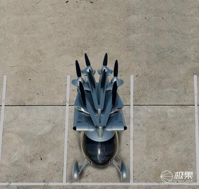 不飞行时,长臂上的螺旋桨还会向后摆动收纳,完全收起后体积较小,可以停放于普通的停车位或者车库中,无需使用直升机场或专门的飞机跑道,非常方便。