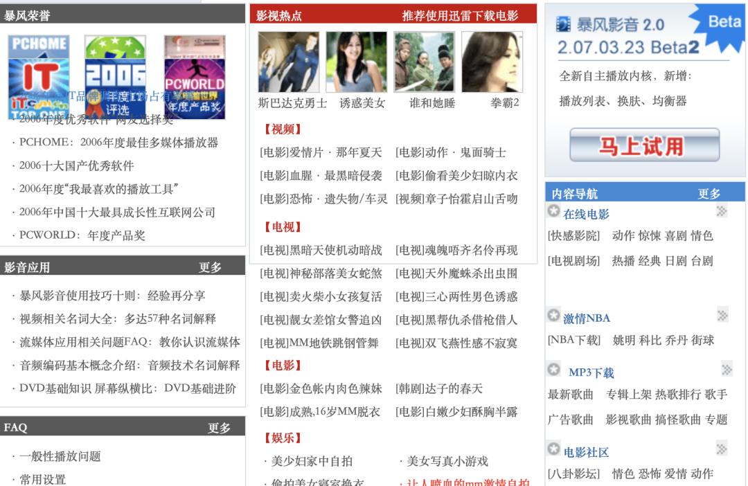 但在互联网初期,网络格式复杂繁多,因内置解码通常需要支付版权费用,很多主流的播放器中只有少数主流的解码器,这意味着你从网络上下载的文件有很大几率不能直接打开。但搜索、安装第三方外挂解码器对大多数家庭用户来说根本不现实,所以大家都更倾向使用「一步到位」的通用第三方播放器。今天的主角暴风影音就诞生于那个年代: