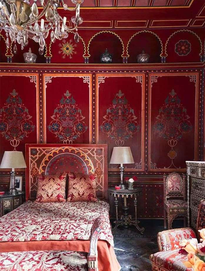 不同的房间有不同的主题色,浓烈华美,杂而不乱。