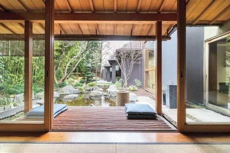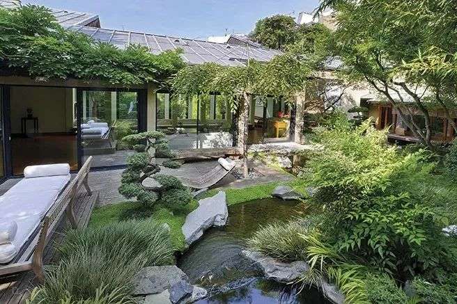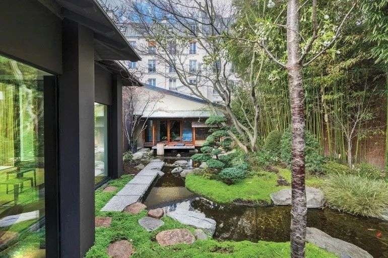 庭院中心是一个鲤鱼池,一切草木都围绕着鲤鱼池来布置。为了让住宅的庭院完美还原日式风情,院子里的花草树木都是从日本直接运到巴黎来的。