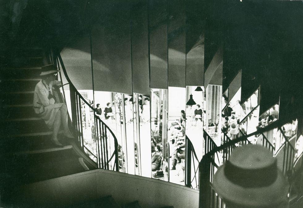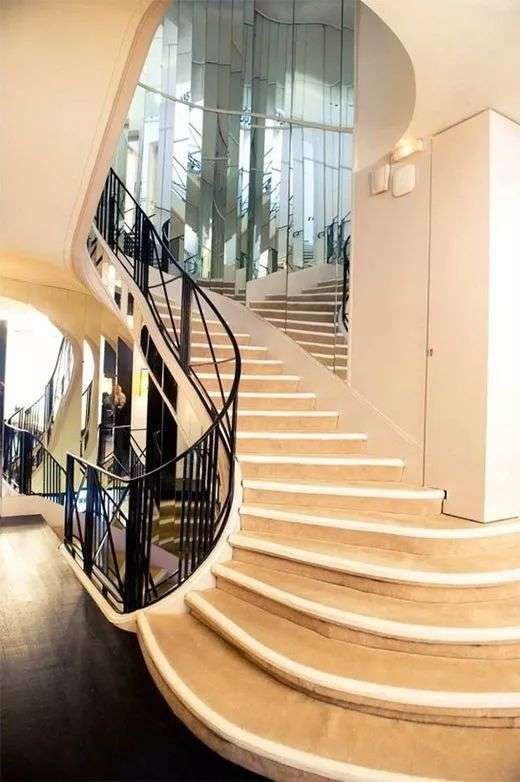 公寓内的米白色旋转楼梯从一楼一直贯通到顶楼,墙上的镜子可以映出一楼大厅的景象。香奈儿喜欢悄悄呆在楼梯上,观察一楼顾客们的反应。