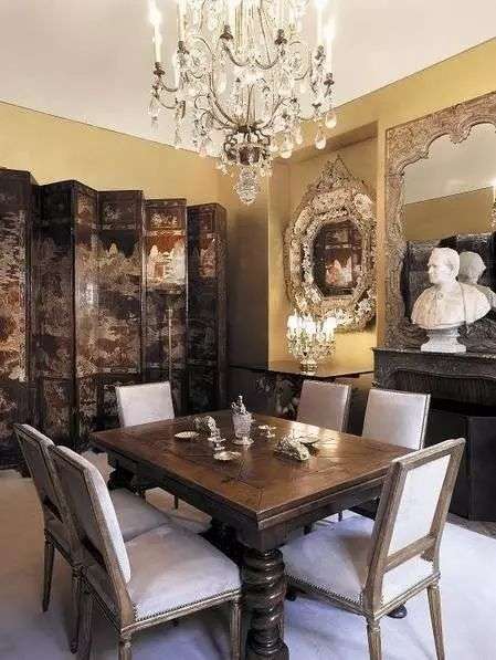 流光溢彩的水晶灯和华丽繁复的镜子,将餐厅点缀得华美辉煌。