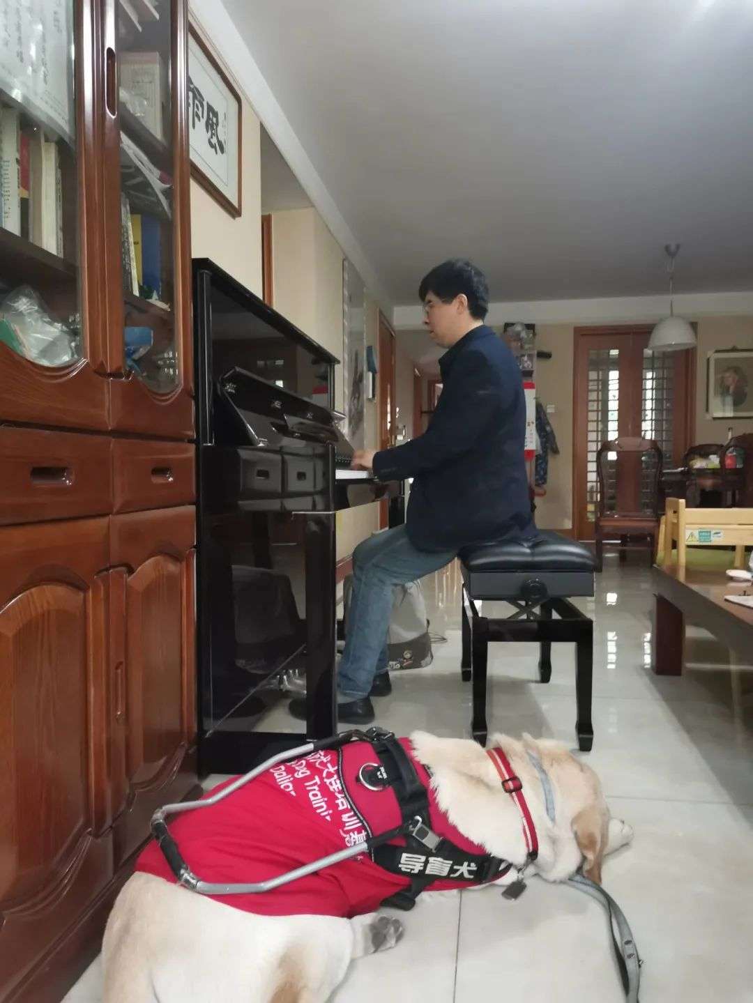杨康是一位盲人钢琴调律师,见到他的时候,他正准备打车去客户家里调琴。导盲犬迪克穿着工作服乖巧地站在主人脚边,看到有陌生人走近也毫不分心,只在我和杨康交谈的时候微微伸鼻子嗅了嗅我的手以示问候。