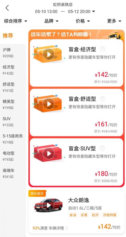 此外,在今年五一节到来之前,许多平台如飞猪、同程、去哪儿、携程等纷纷推出了盲盒机票、酒店等产品,吸引年轻人消费。而早在2020年,一嗨租车就敏锐发现了年轻人市场的新需求,推出了盲盒车型系列产品。