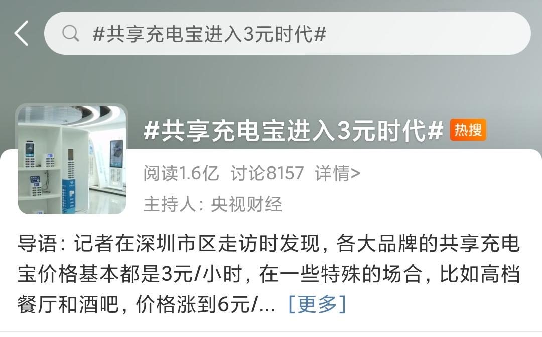 但提高租赁价格并不是万能的。4月24日,“共享充电宝进入3元时代”话题一经发酵迅速冲上微博热搜,目前话题阅读量已达1.6亿。近年来,由共享充电宝涨价引起的热议层出不穷,在充电宝租费不断提高的前提下,尽管共享充电宝被认为是低频应急消费需求,但大部分网友还是认为“太贵了”。