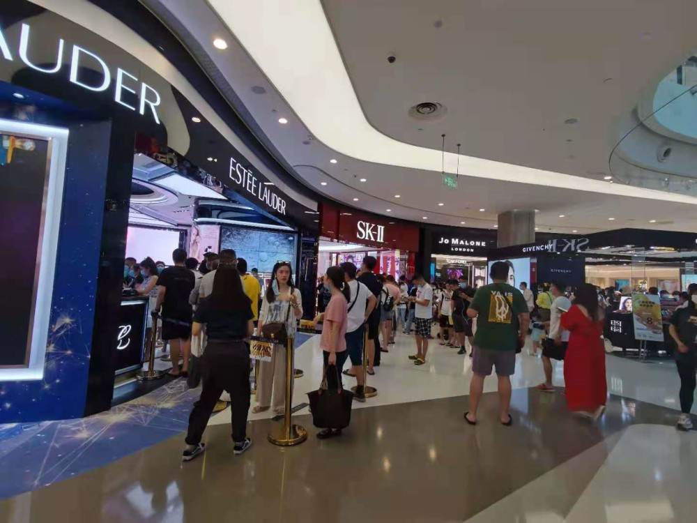三亚免税店化妆品门店外人潮涌动