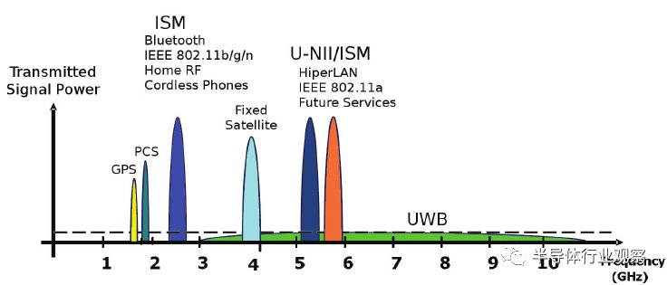Airtag背后的UWB(超宽带)技术并非全新的黑科技,而是已经经过了接近二十年的发展。与传统射频系统不同,UWB将自己的信号功率分配在很宽的频谱段中(常常超过1GHz),而在每一个频点的功率都很小,从而避免对其他无线协议的干扰。这样做的好处是UWB可以在全球不同的地区都能普适地工作,而无需担心每个地区的频谱分配,而正是因为UWB的信号带宽很大,因此得名“超宽带”。