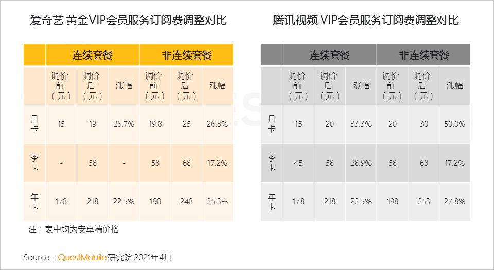 继爱奇艺黄金VIP会员费2020年11月涨价后,腾讯视频宣布2021年4月10日起VIP会员费涨价
