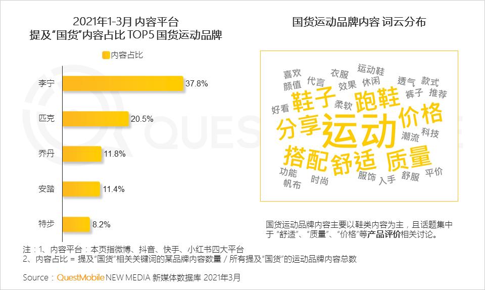 1.2 运动品牌内容营销中的“国货”元素受到追捧,品质舒适、质量过硬、平价成为用户的普遍认知