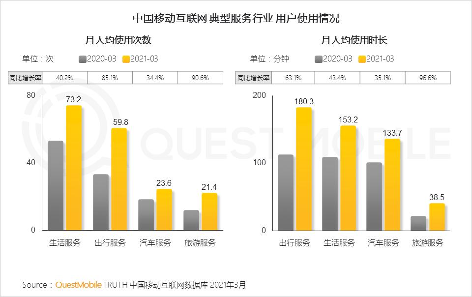 8.2 旅游服务行业的用户使用时长和次数在2021年一季度已经恢复到疫情之前水平,并呈现上升态势,预计将在二季度实现强劲增长