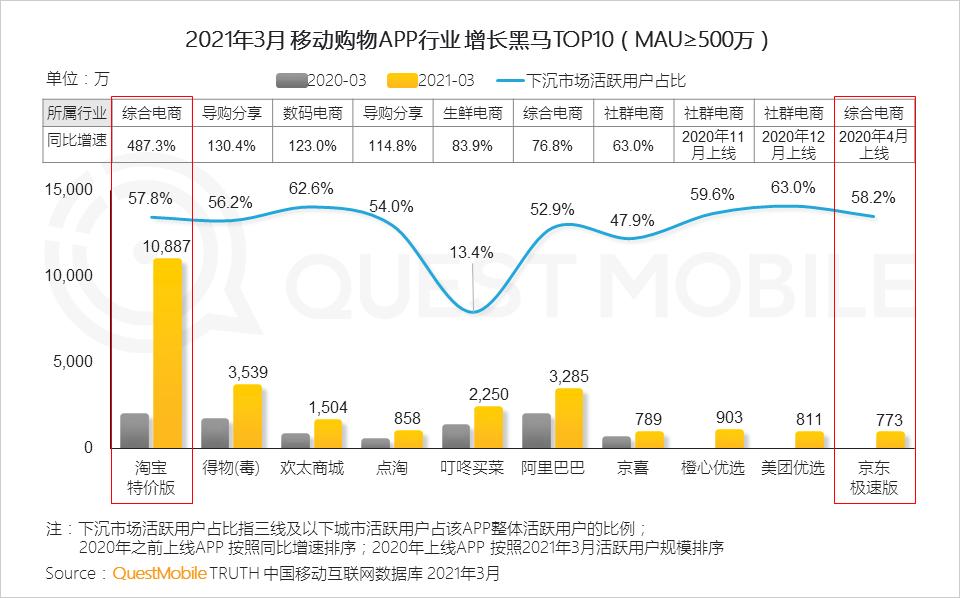 Ⅲ. 淘宝特价版和京东极速版吸引了更多下沉市场大龄用户,与主APP形成用户差异性互补