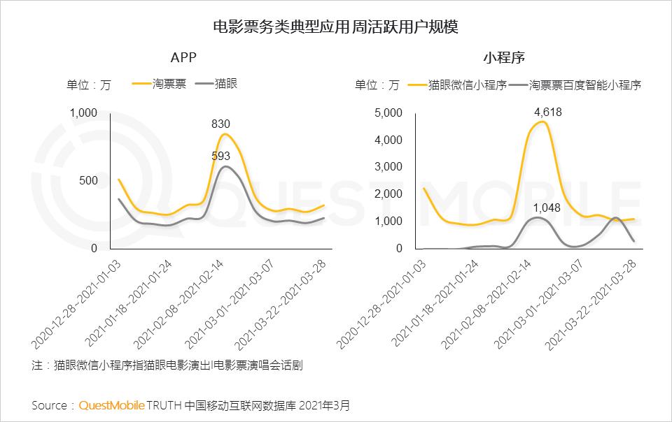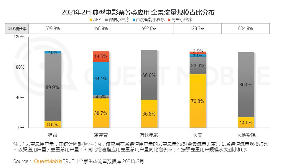 6.3 春节档电影的火爆,推动电影票务类应用迎来增长高峰,小程序为电影票务应用贡献主要流量