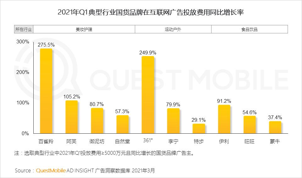 1.1 国货品牌继续加强数字化营销投入,典型品牌同比增长明显