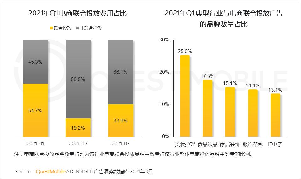 Ⅰ.受到1月年货节等促销节日影响,品牌联合电商平台投放广告程度加深,并以美妆护理、食品饮品为主要联合投放行业
