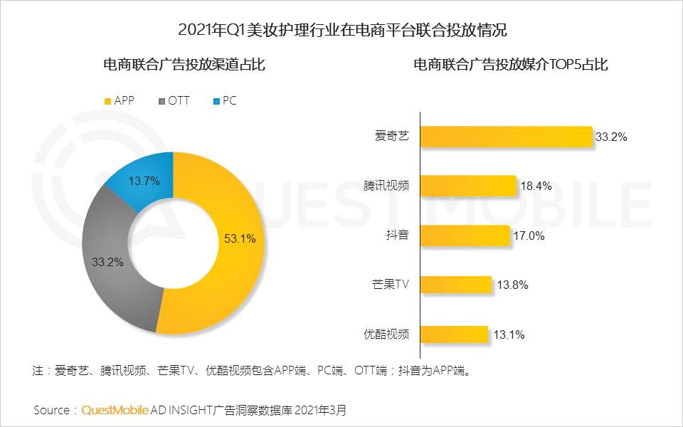 Ⅱ.以美妆护理行业为例,与电商联合投放集中于在线视频平台,并以多渠道组合投放形式触达人群