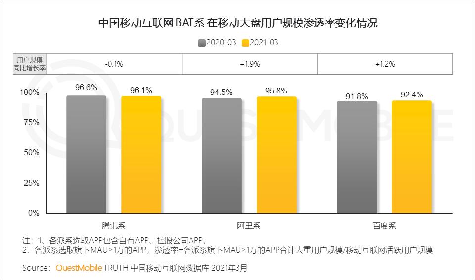 1.1 腾讯、阿里及百度系用户已经基本覆盖整体网民,庞大用户流量的留存,变现及更多场景覆盖成为关注的内容