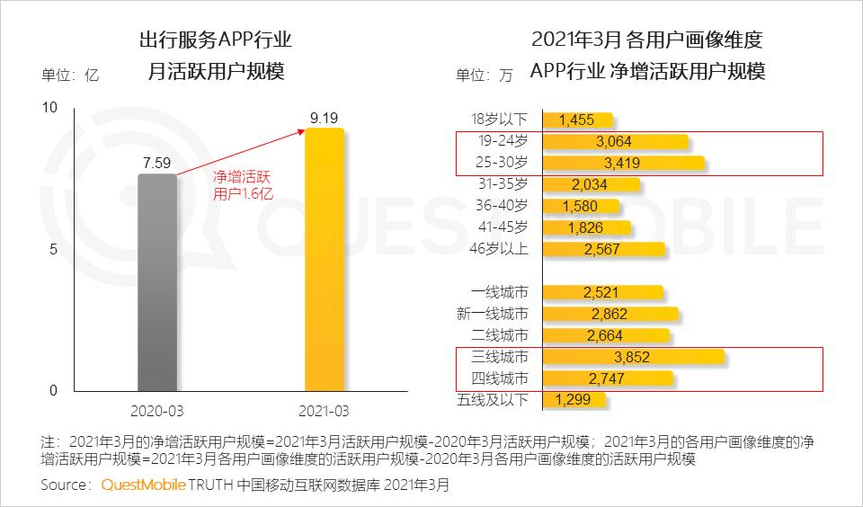7.2 下沉市场的出行需求依然具有开发潜力,小镇青年的出行需求增长是出行服务用户规模增长的主要动力