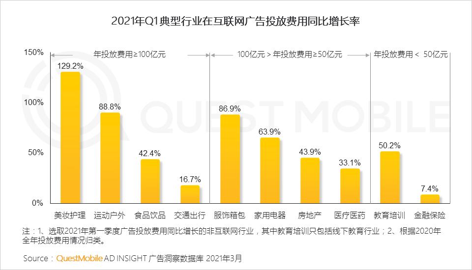 2.3 经济全面发展,2021年一季度广告投放活跃度接近2020年三季度水平,相较于2020年同期特殊情况,同比增长显著