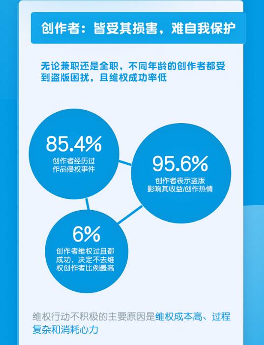 《白皮书》数据显示,截至2020年底,中国网文创作者的数量已经达到了2056万人,网文作家中频繁遭受侵权的比例达到了42%,仅14.6%的创作者表示未经历过侵权事件。这其中,有超过60%的创作者认为侵权会严重损害创作者和平台双方的利益,并严重打击创作热情。