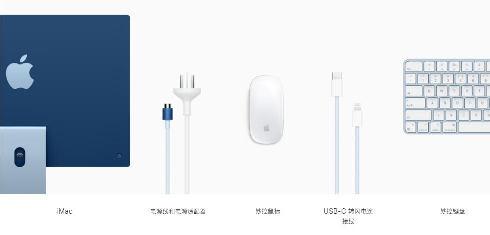 iMac 除了机身换上了 7 种色彩的外壳以外,配套的配件也都换上对应的色彩,包括键盘、鼠标、触控板、磁吸电源线,以及一根 USB-C to Lightning 转接线,至少有 42 个 SKU,苹果对其出色的库存管理依然充满自信。