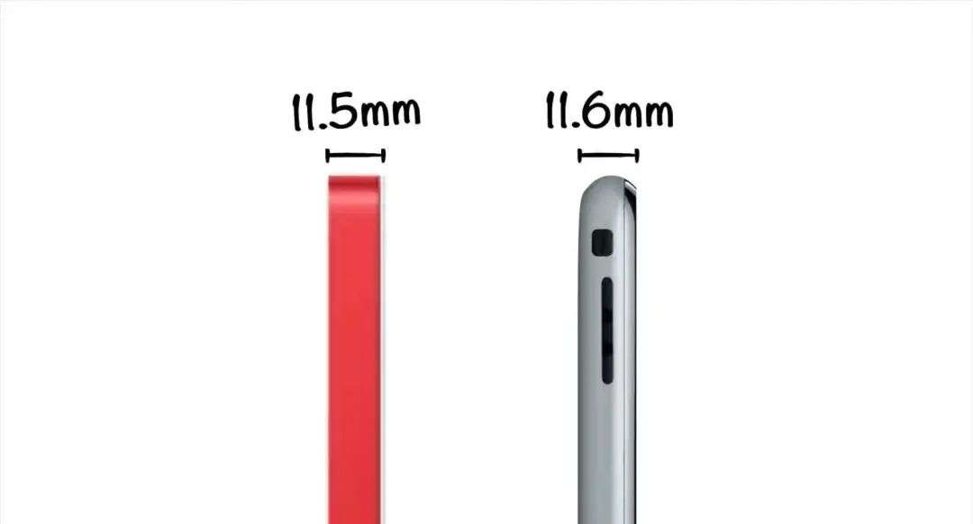 一切的调整都只为了给侧面那令人注目的线条让路,11.5mm 的厚度,甚至比初代 iPhone(11.6mm)还要薄,轻薄化一体化的机身设计让电脑更加接近于「无形」。