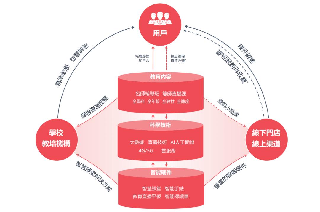 公司教育生态系统具有全面专有的在线教育内容,由各种智能学习设备实现。全方位覆盖应用于课内加校外教育场景,提供创新的与线下融合的学习体验。