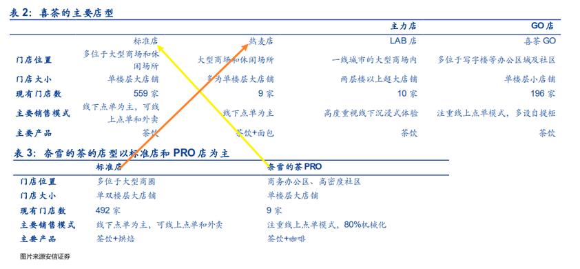 虽然称呼不用,但是从经营层面来看,奈雪の新推出的PRO单店模型和喜茶标准店模型相似,奈雪原有的标准店模型和喜茶热麦店模型相似。