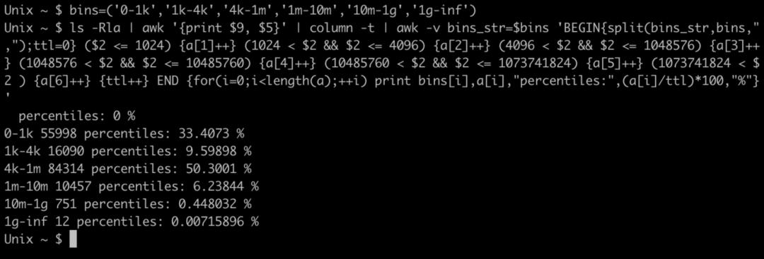 举个例子,UNIX 中大部分的文件 block 都在 4k 以下,那如何用 awk、sed 或其它 shell 命令统计出当前 UNIX 系统所有文件大小的分布情况?这个问题发在了 CSDN 的问答社区,有一个同学写出来一个非常短小精悍的命令,只用三行就把这个问题解决了。