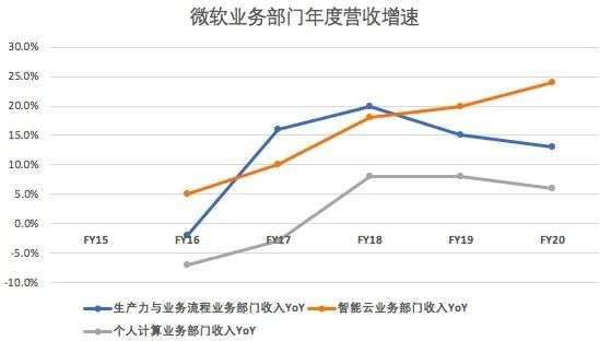 事实上,结合微软FY15-FY20的年报数据来看,智能云业务是增长最快的业务。